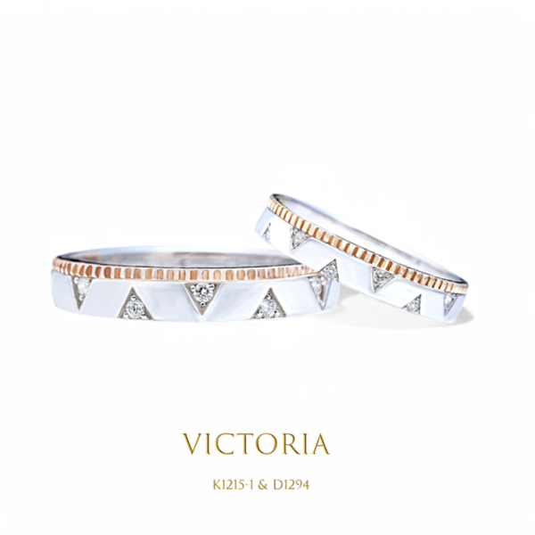 維多利亞 經典款 對稱三角形鑲鑽設計將守護兩人的幸福直到永遠,若需選購 K金 / 鉑金 / 玫瑰金 材質 ,請洽詢各門市。