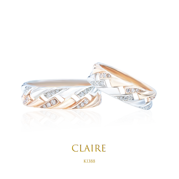 關心周圍人的幸福 Claire ",設計對戒經典鏤空方式,能讓兩人愛情更堅定,若需選購 K金 / 鉑金 / 玫瑰金 材質 ,請洽詢各門市。