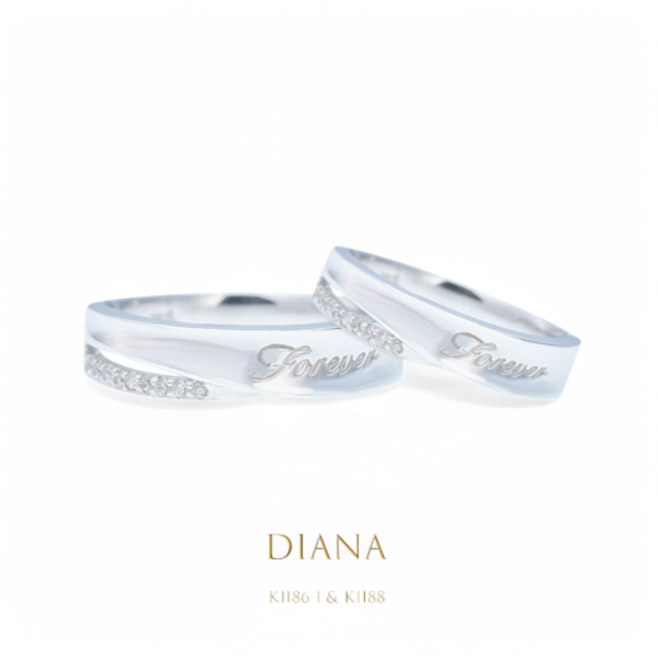 戴安娜 光亮如白畫;月亮女神 斜面切割設計平行鑲入配鑽 ”永遠的愛“,若需選購 K金 / 鉑金 / 玫瑰金 材質 ,請洽詢各門市。